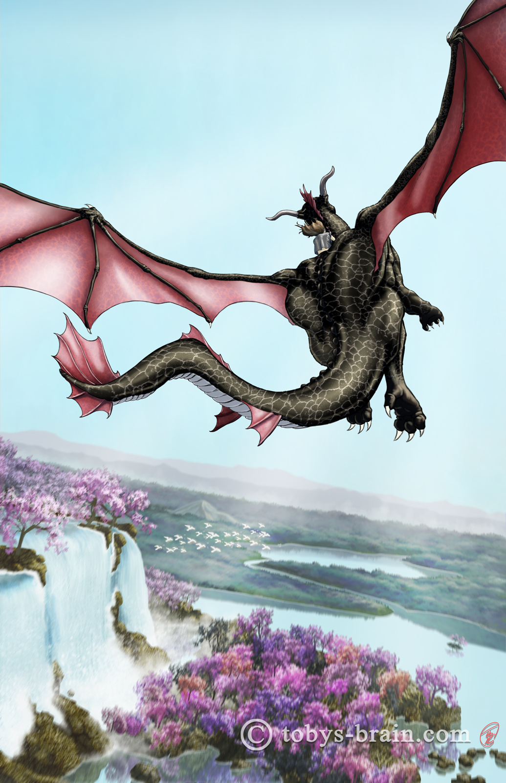 For book 3, I once again had to try to bring the magical world of Magia to life (I already illustrated it on a smaller scale as seen through the portal on the cover for book 2). This image was very challenging for me because a huge chunk of it is landscape, which is a weakness of mine.I built and used several custom brushes to create this world, and overall Im pleased with it. I made use of a tilted horizon again to accentuate the flight of the dragon, and I also threw in a subtle motion blur tto the landscape. I think I tend to be much stronger with pencil and ink, my use of color always feels hit or miss to me, but given the subject and setting, I like to think this one is a “hit” (actually, it has replaced Willy McEyeballs as my home and lock screens on my phone). The dragon anatomy could use some work, and I could have spent weeks getting into scales and wing veins and other details, but I’m happy with it.
