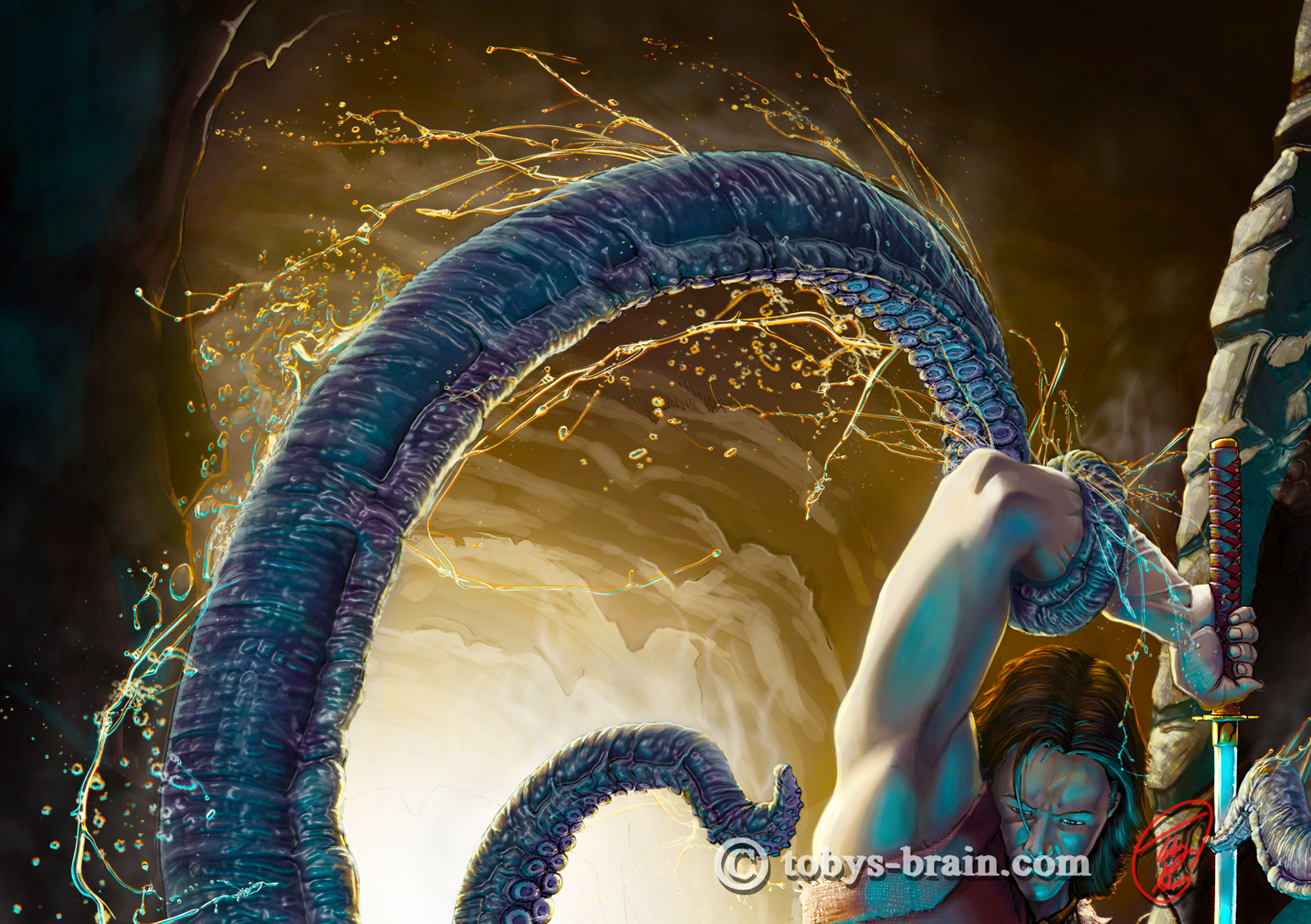 So, I had said I would post some zoomed in sections of Ohrim vs the Cave Squid because I had put so much time and attention into little details, so here are 3. The trouble for me is, when I zoom in, I still see bits I want to fix, things I’m not quite happy with. This particular piece clocked in at just about 70 hours, which is probably far too long for any one piece. The more I do, the faster I should get, though.
