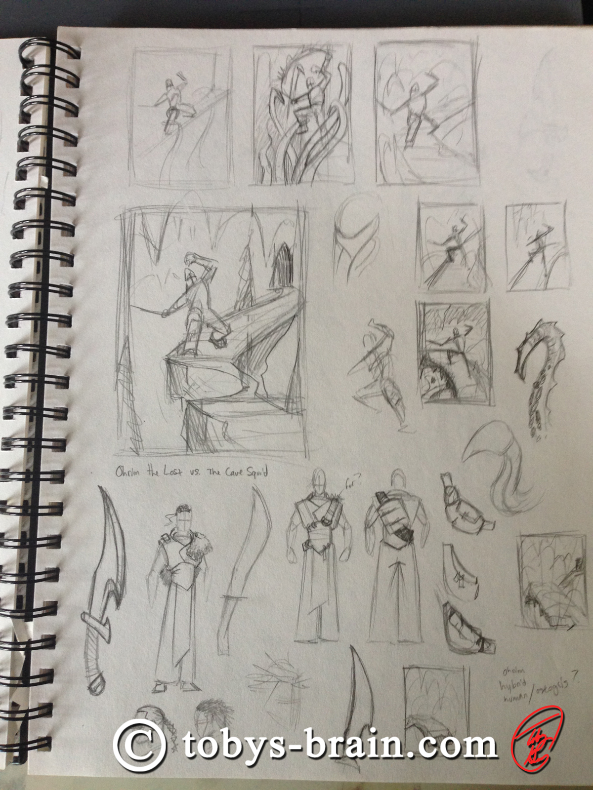 I also unearthed some thumbnails and sketches for my first crack at Ohrim vs. The Cave Squid.