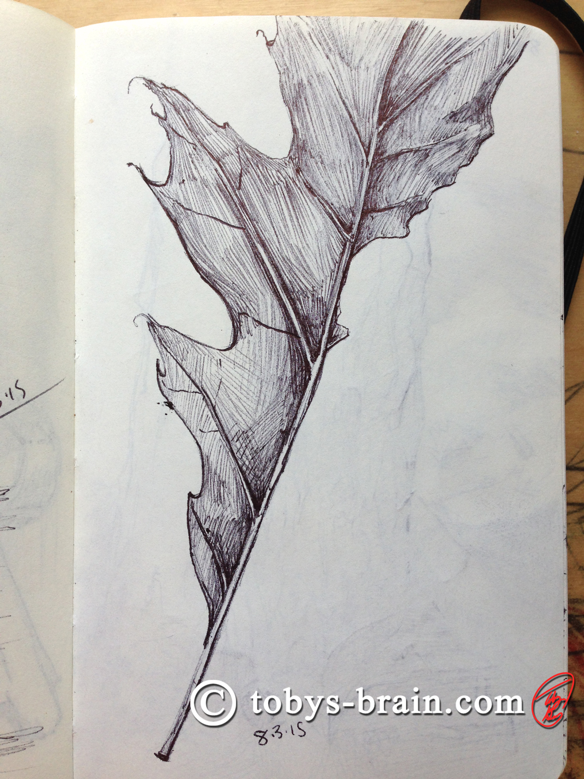 Okay, so, there’s a fun story behind this page. The top sketch was the beginning of a knot in the picnic table in the Whittling Chip area. My youngest son had just been handed a pocket knife and found a stick and plopped himself down on the ground near me. I looked up to tell him he was supposed to be with the rest of the group getting instructions from the staff just in time to see him holding the knife in his non-dominant hand and slicing downward through one of his fingers, right on the joint. I saw the blood squirt and jumped up immediately, flinging pens and sketch book everywhere, to administer some basic first aid, get him to the nurse, and then to the emergency room. Fortunately it was a sharp knife (much easier wound to deal with). The little rock on the table was a sketch done at the water front picnic table later that afternoon when we were finally back at camp.