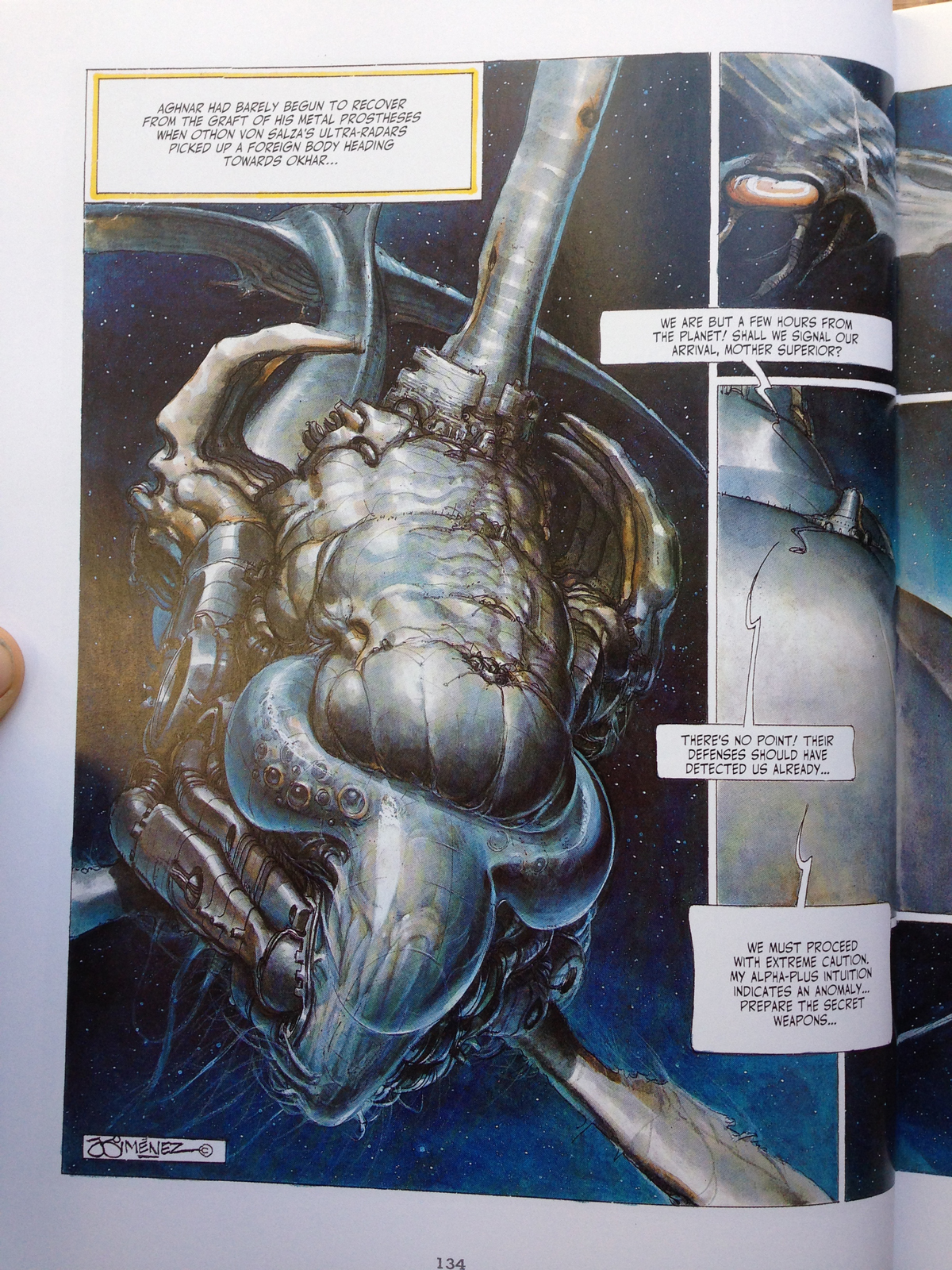 The art work by Juan Giminez is quite frequently breath-taking (though at times the lack of strength in a few of the underlying drawings distracts from the beautiful colors). The colors, the scale…