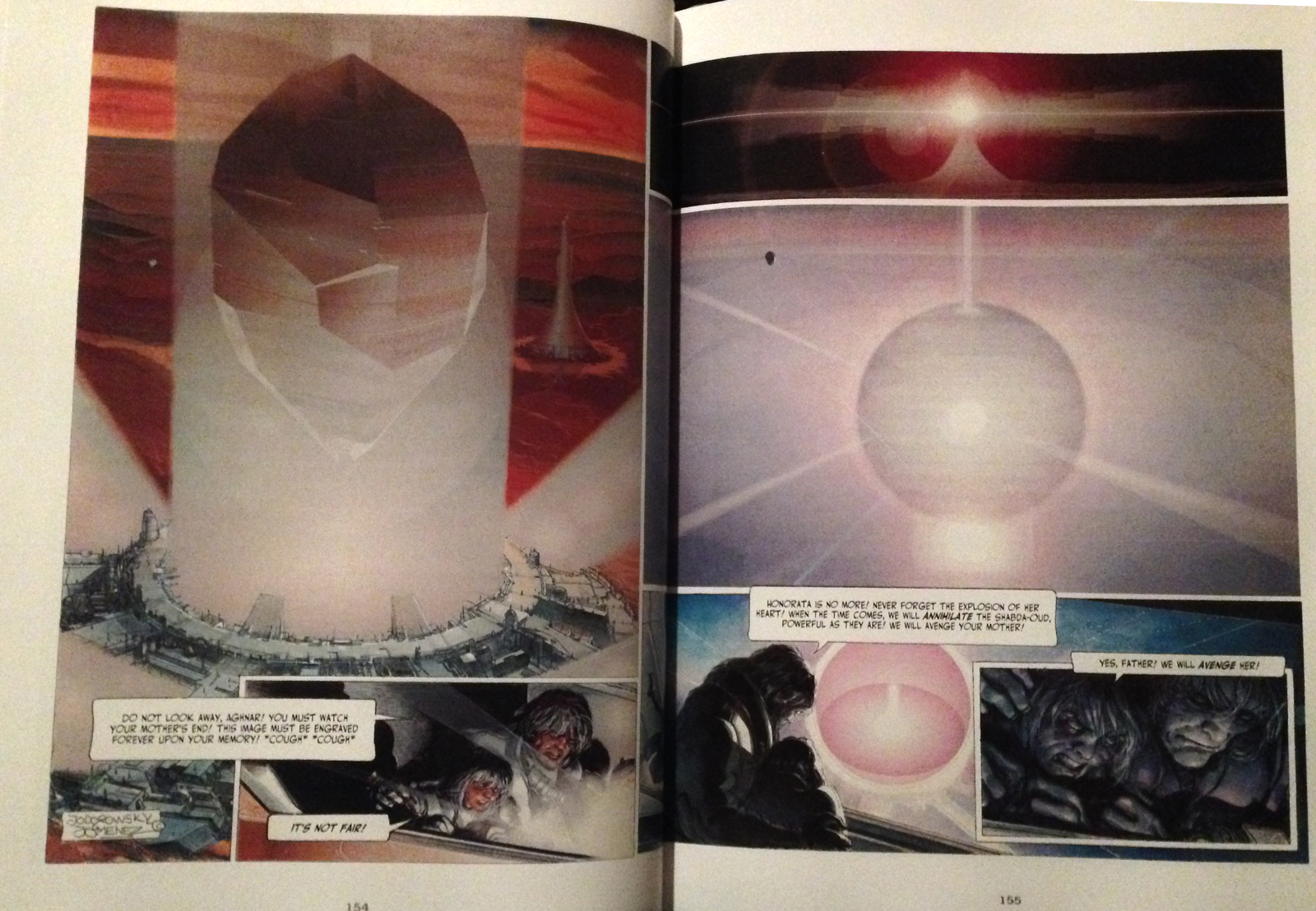 While I was reading it, I couldn’t help but draw comparisons to the Dune books and some of their metaphysical ramblings. Then I got to the afterword by David S. Goyer (the comic book writer, novelist, screenwriter, producer, and director, who has worked on, among other things, Man of Steel, Batman Begins, The Dark Knight, and the upcoming Batman vs. Superman). Apparently Jodorowsky-with Moebius doing storyboards, Pink Floyd on tap for music, and H.R. Giger doing designs-was attempting to adapt Herbert’s Dune back in 1975. The script would have translated into a movie over 14 hours long. Apparently, according to Goyer and a documentary, “He wanted his audience to experience the kind of hallucinations one would have while taking LSD”. That explained everything. Jodorowsky took all his passion and vision for Dune and came up with The Incal and The Metabarons, and while it is unique in it’s story and hallucinatory insanity, you can definitely feel the influence of Dune.