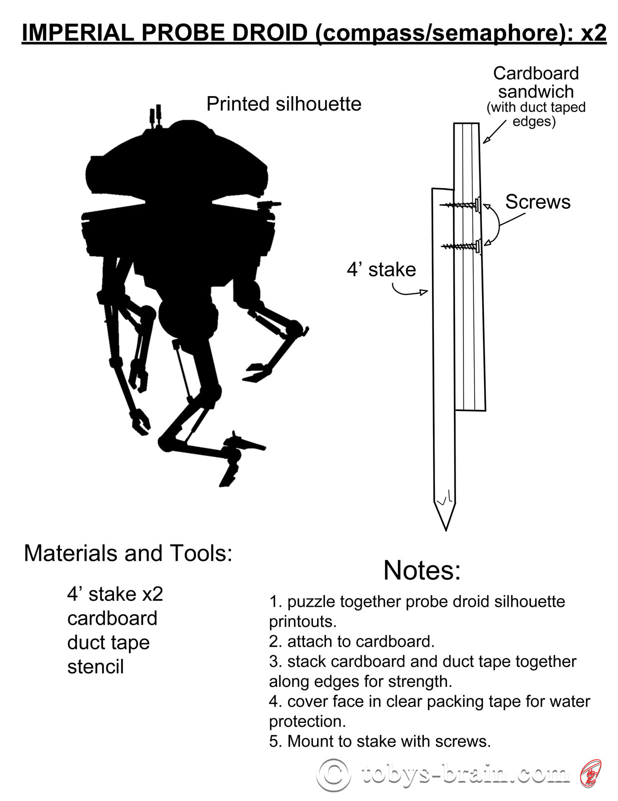 I like the way this Probe Droid silhouette turned out with the white highlights. I used the silhouette I made for the compass station award, added the highlights, then enlarged it. This was also around 3 feet tall and mounted to a box.