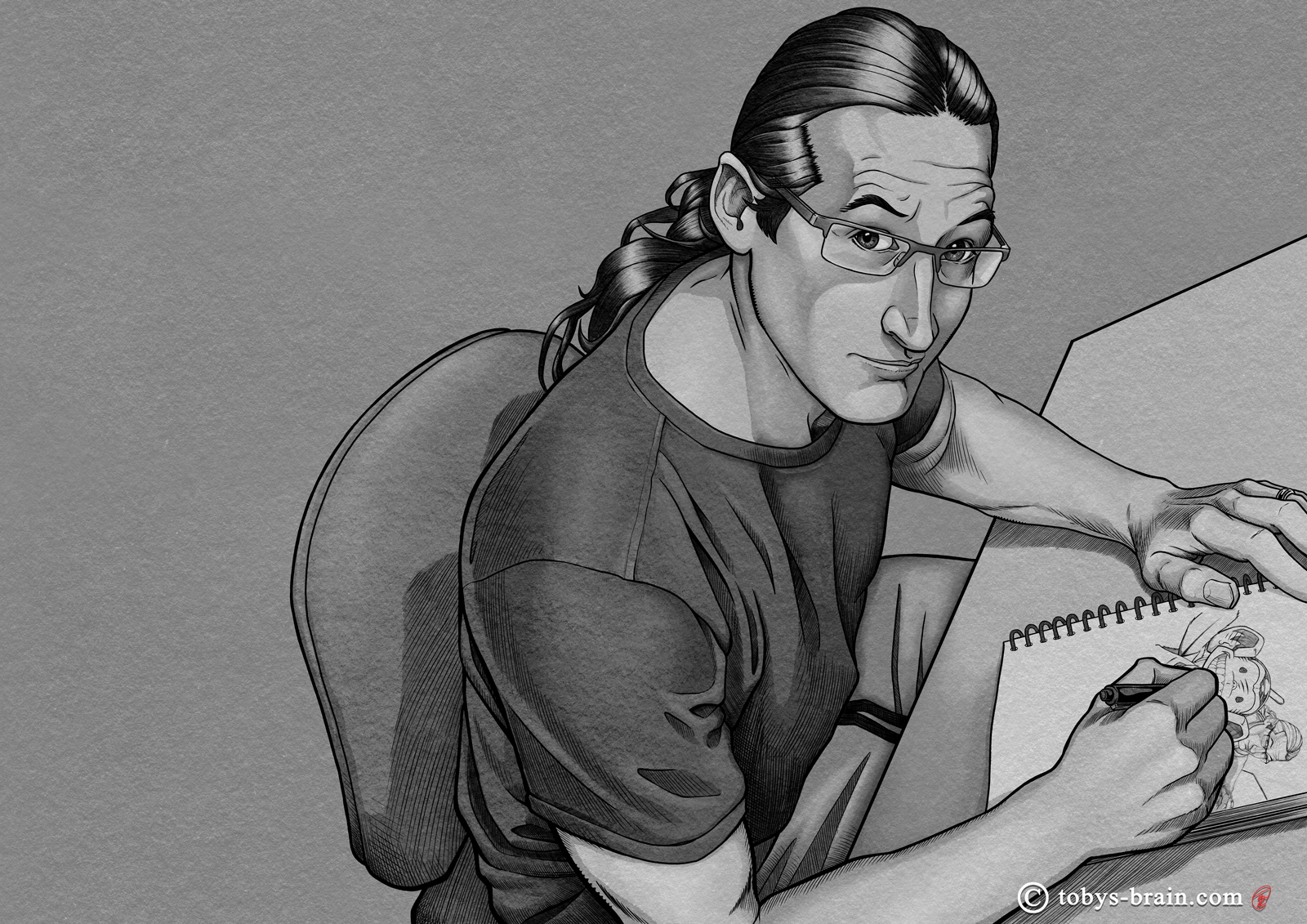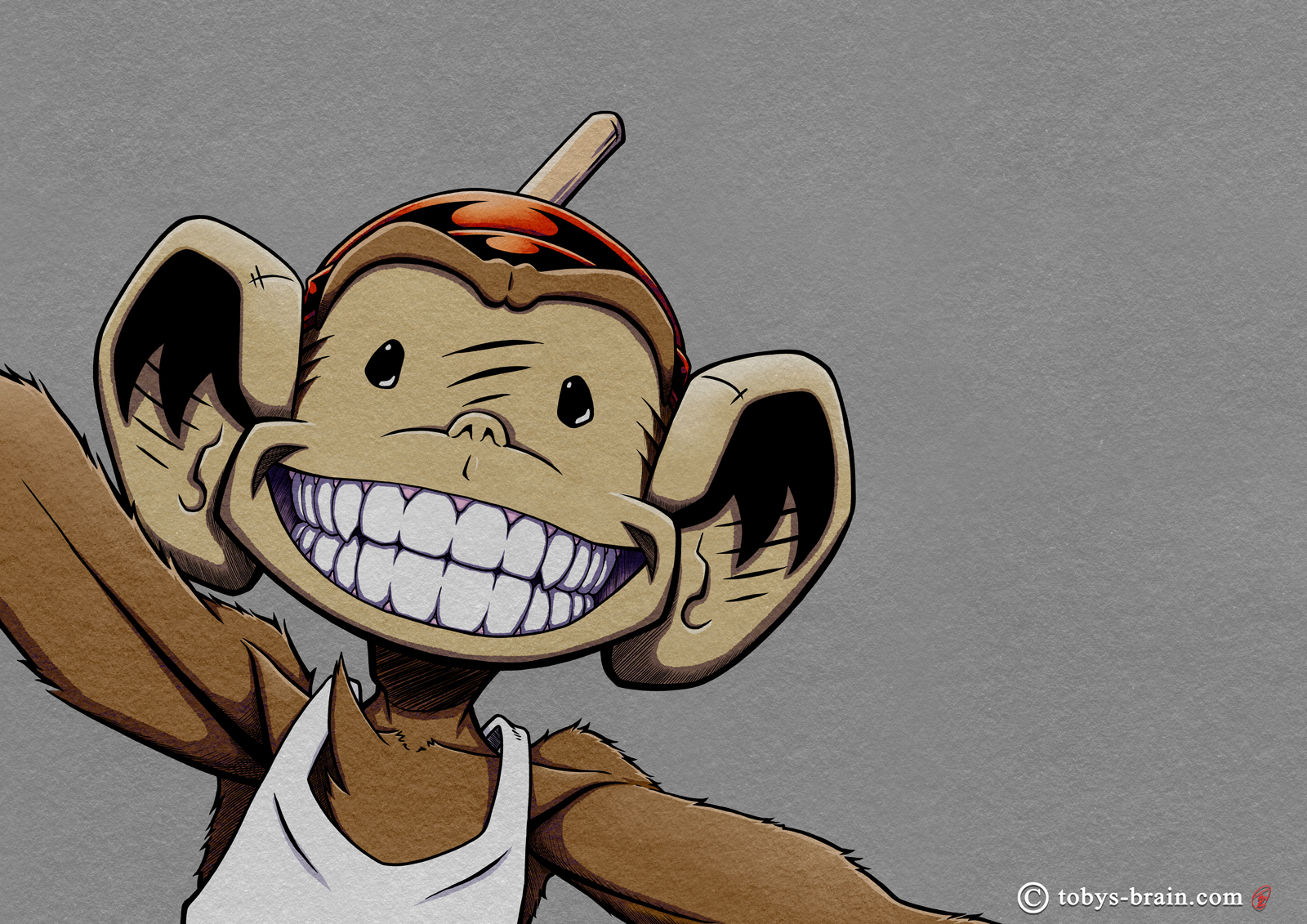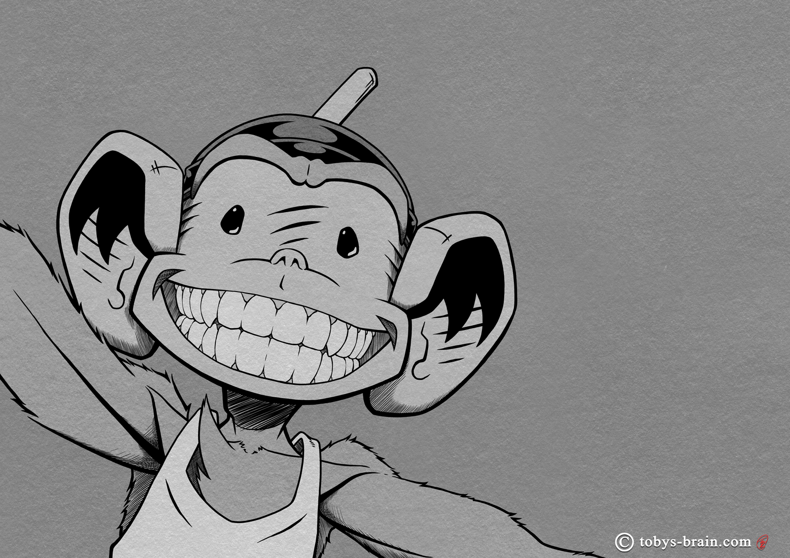 A couple of weeks ago, Clip Studio Paint announced one of their semi-regular illustration contests, with the them “the best smile”. I don’t enter hardly any contests (I can’t remember any, really, unless you count submitting to Spectrum, but that’s not really a contest), but I figured “Plunger Monkey has a good smile…” Shortly thereafter, this image popped into my brain. It was a lot of fun to create, and something I could “noodle” away at endlessly. It really helped me refine my digital comic making workflow, which I just started to employ as I rework Inside Toby’s Brain. I did the whole image in greyscale first, making use of some of my custom paper and pencil textures, then I added color through gradient maps and a hand painted layer. I don’t know that I stand much chance of winning (top prizes include subscriptions to CSP for a few years, money, and I think a Wacomb tablet, though I may be getting confused with another contest that was announced recently), but there’s zero chance if I don’t enter. I learned some things and grew as an artist a little bit in the process, so it was worth it either way.