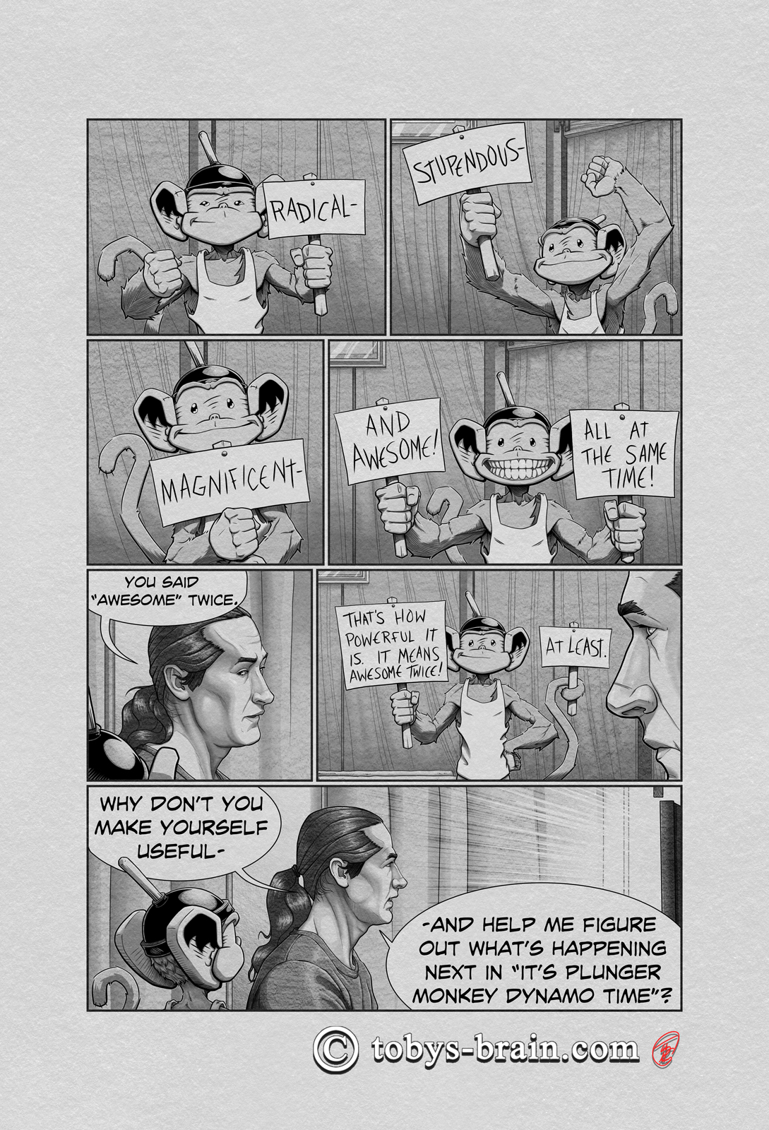 I finally buckled down and finished Inside Toby’s Brain, my short comic that gives readers a window into how my Brain and Plunger Monkey get along. I can’t remember when exactly the idea came to me and I first started working on it, but it’s probably at least before 2017. I think I drew the first 3 pages in the app MediBang on my old Samsung tablet (I still have those original files, because I keep everything, and man has my art improved over the years. I’m still not happy with my skills, but a little perspective every now and then is good for the mental health), which I think I got in 2016 (?) and I didn’t get an iPad until 2017. It was always meant to be a fun side project that I could work on when I wasn’t sure what else to focus on while I developed my skills, figured out a comic book workflow, and tried to define my “style”. It evolved into something a little bit more, and I do have a plan for it to see print…but it’s tied to another project that I’m still a ways away from tackling. Here’s a few of the “finished” (pending a final edit at a later date) pages, not necessarily sequentially: