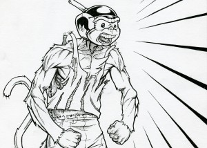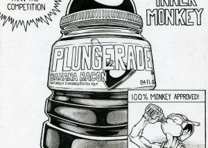 INKTOBER 2025 Day #13: DRINK. “Man, the Plunger Monkey related product ideas just don’t stop. What better way to fuel your simian-inspired, hardcore workouts (and your inner monkey) than