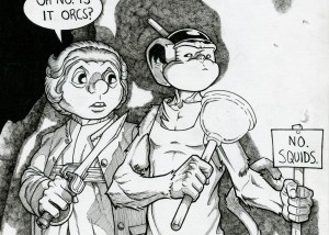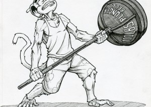 INKTOBER 2025 Day #9: HEAVY. “You’ve used barbells and dumbbells. Maybe you’ve even used kettlebells and clubbells. Now introducing the plate-loaded, fully adjustable Plungerbell! I have been working out