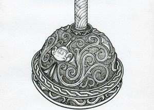 INKTOBER 2025 Day #17: ORNATE. “The kind of plunger you’d pass down through the generations as a family heirloom. Might want to keep this as a decoration rather than