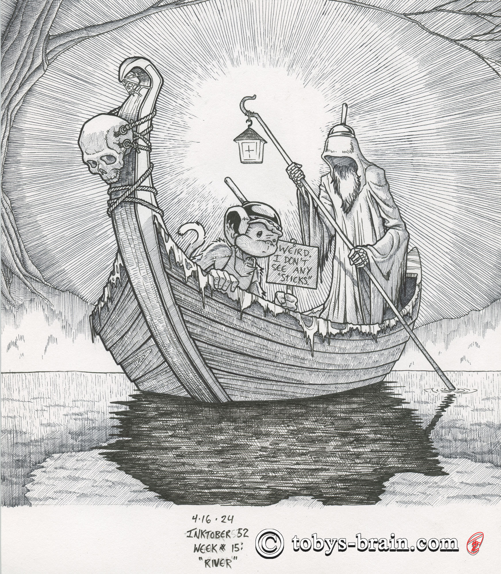 “Depending on how well versed anyone may or may not be in Greek mythology, I may have to explain this interpretation of the prompt ‘river’. When I saw the prompt, two things came to mind: Billy Joel’s hit ‘River of Dreams’ (which has been stuck in my head for days now) and the river Styx. It was the body of water that separated the land of the living from the dead, and the ferryman Charon would transport the dead to Hades. Styx is apparently also a goddess, daughter of the Titan Oceanus. She sided with Zeus in the war against the Titans, so to honor her, Zeus decreed that the solemn oaths of gods were to be made at the river Styx. It’s also the river that sea nymph and water goddess Thetis dunked her infant son Achilles in to make him invulnerable.