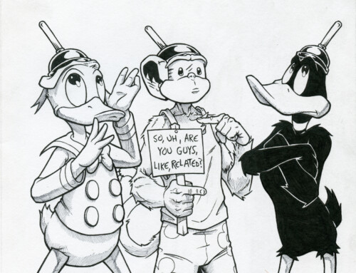 I reached the century mark in this cartoon self portrait project. I think my drawing has come a long way since the beginning, I’m starting to like a lot more of my unreferenced portraits. I also took to adding word balloons rather than relying on captions, which has added to the fun.