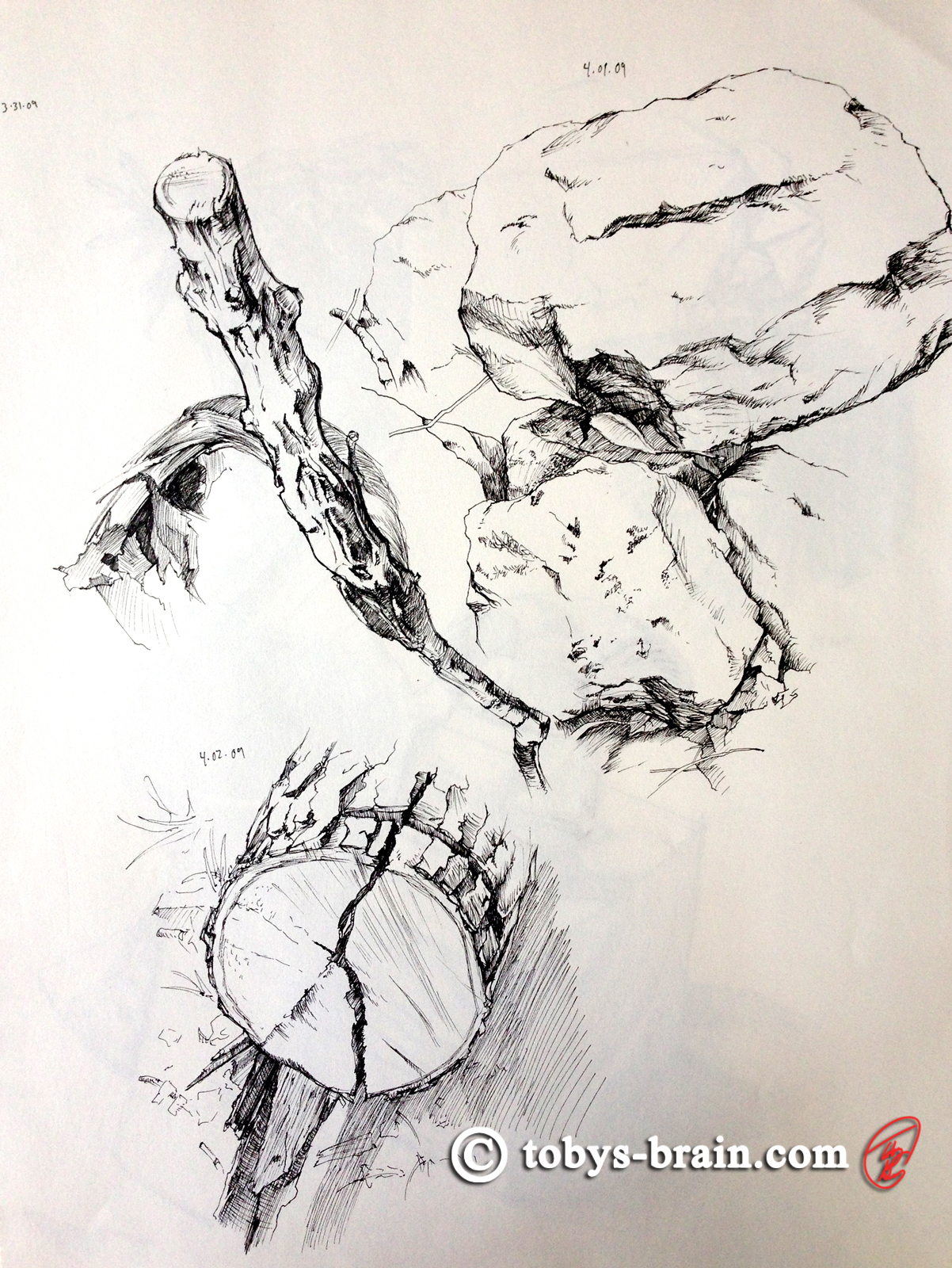 Some random nature studies from back in the day done with various thicknesses of Micron pens. I was working on capturing textures with linework.