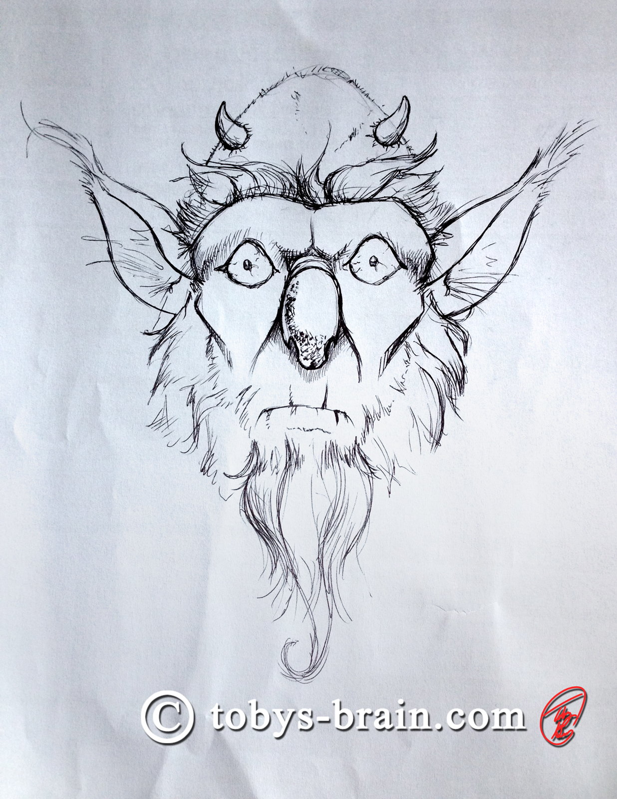 I started doodling the nose shape randomly and this face grew out of it. My meal came a little too quickly, I would have liked to have continued a little longer to see where this would have gone while I was “in the zone”. I was reminded how fun drawing with a simple ball point pen can be, I think I’ll have to clip one to my moleskin and start carrying that around with me again.