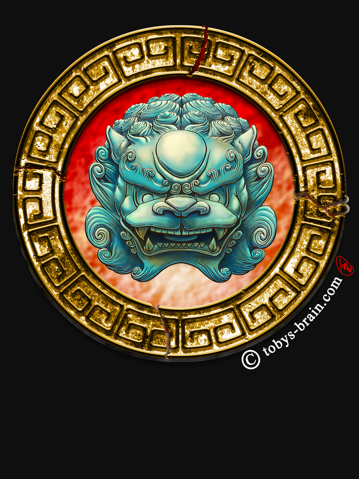 Fortunately, the high resolution, un-layered versions that I uploaded were just fine, so I’m still able to make some tweaks, it just will be a tad more difficult and time consuming without the benefit of the layers. The Fu Dog Ring shirt (and a variant of it) is the first design I tackled:
