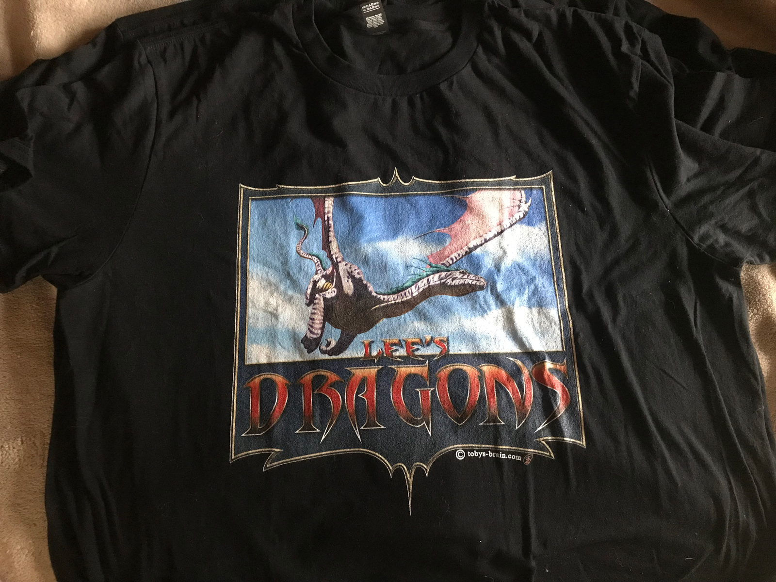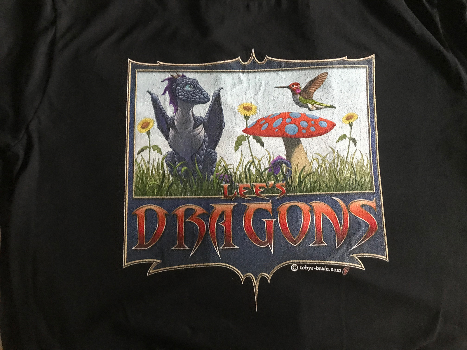 Well, it’s a few weeks late, but I finally pulled off the next phase of my wife’s birthday giftage: custom shirts depicting the dragons I draw for her birthday. I attempted yet another new process, and I had to hide my work from her again, and life was getting in the way, but, I got it done. Right now, her shirts are the only ones. If there’s enough interest or encouragement, I may release them to the public at large as their own line of shirts: Lee’s Dragons.