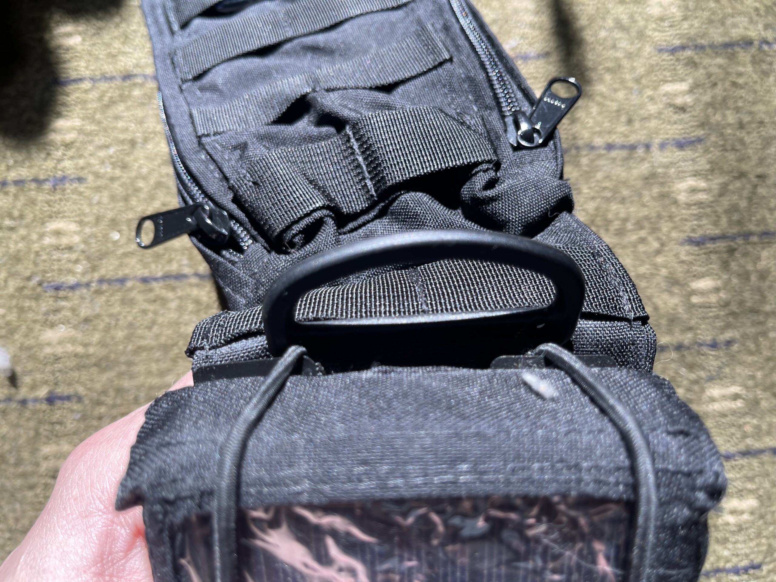 Chest strap that works no matter which shoulder I wear the bandolier on (it’s ambidextrous). I found some circular carabiners that work great.