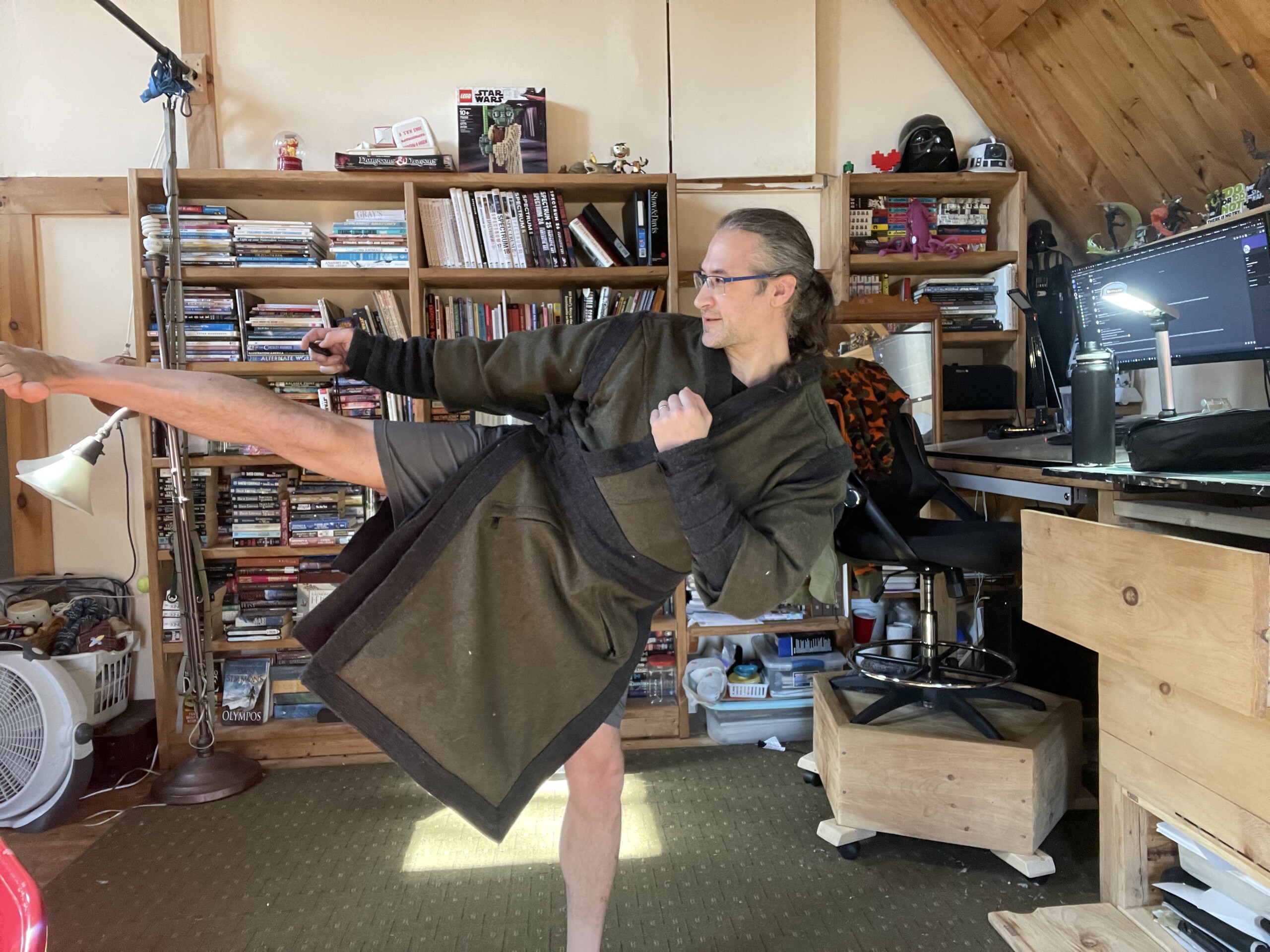 Yes, the coat is a bit Jedi-ish (I’ve already had several people say “may the Force be with you” at the mountain), but it really just shares a similar source of inspiration (not that the Jedi angle is unintentional…I am a huge Star Wars nerd after all): traditional Chinese and Japanese fashion/clothing. I patterned the general function of the coat off of my karate gi and went from there.
