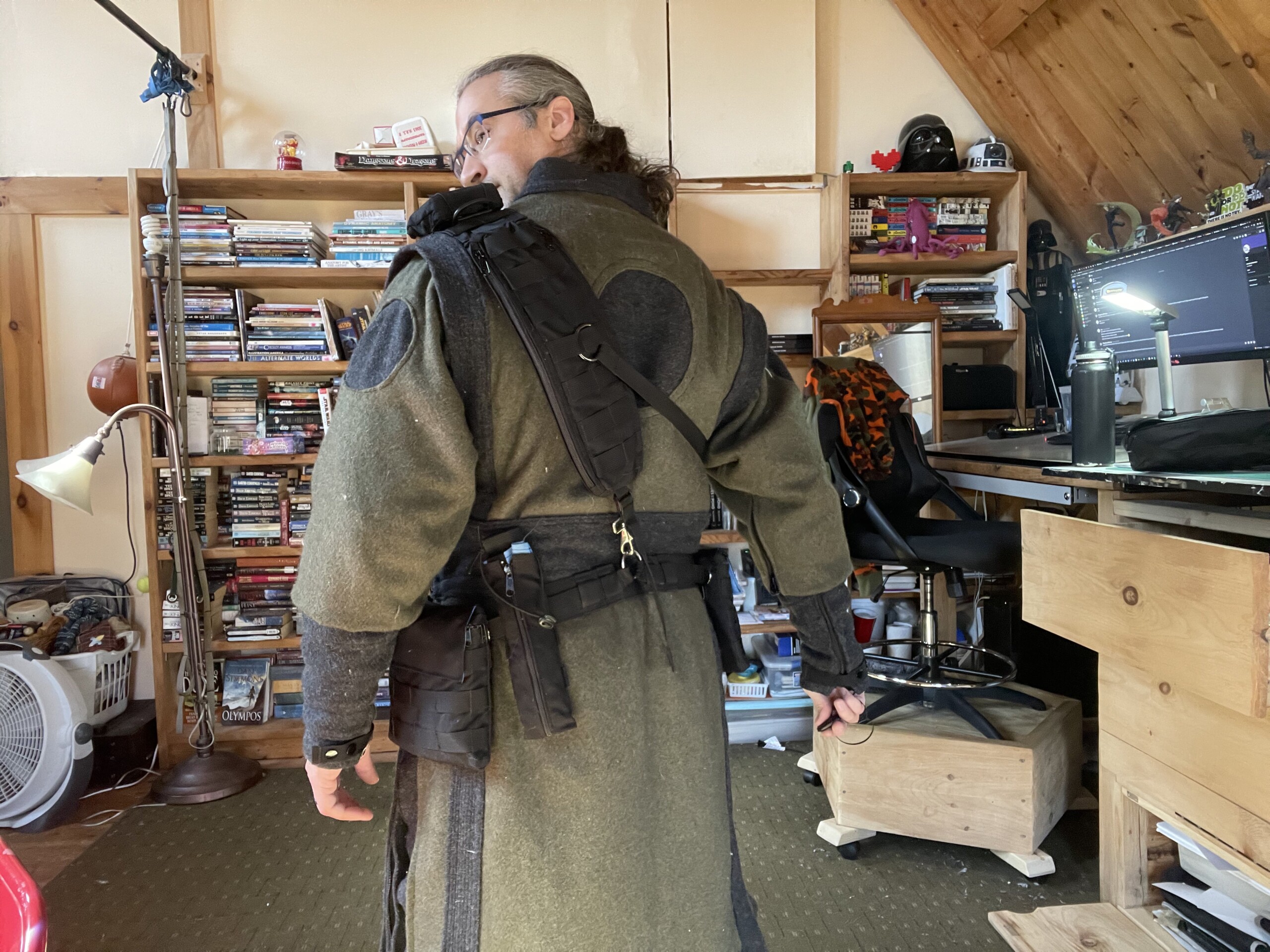 There you have it, my 2024 sewing projects (…so far…), presented in the order I worked on and completed them. I’ve used the bandolier bag for almost 2 months now, I think, and so far it’s functioning well. The coat has been great, such a night and day difference in mobility. It’s approximately one less wool layer everywhere compared to the Beast Coat, but it’s still plenty warm and I can fit more base layers underneath as needed (mostly due to having a bigger arm hole opening). The Leg Duffle Bag will get its first test in the next day or so when I have a scout overnight event, so I’m looking forward to that. Time to put the new gear through its paces.