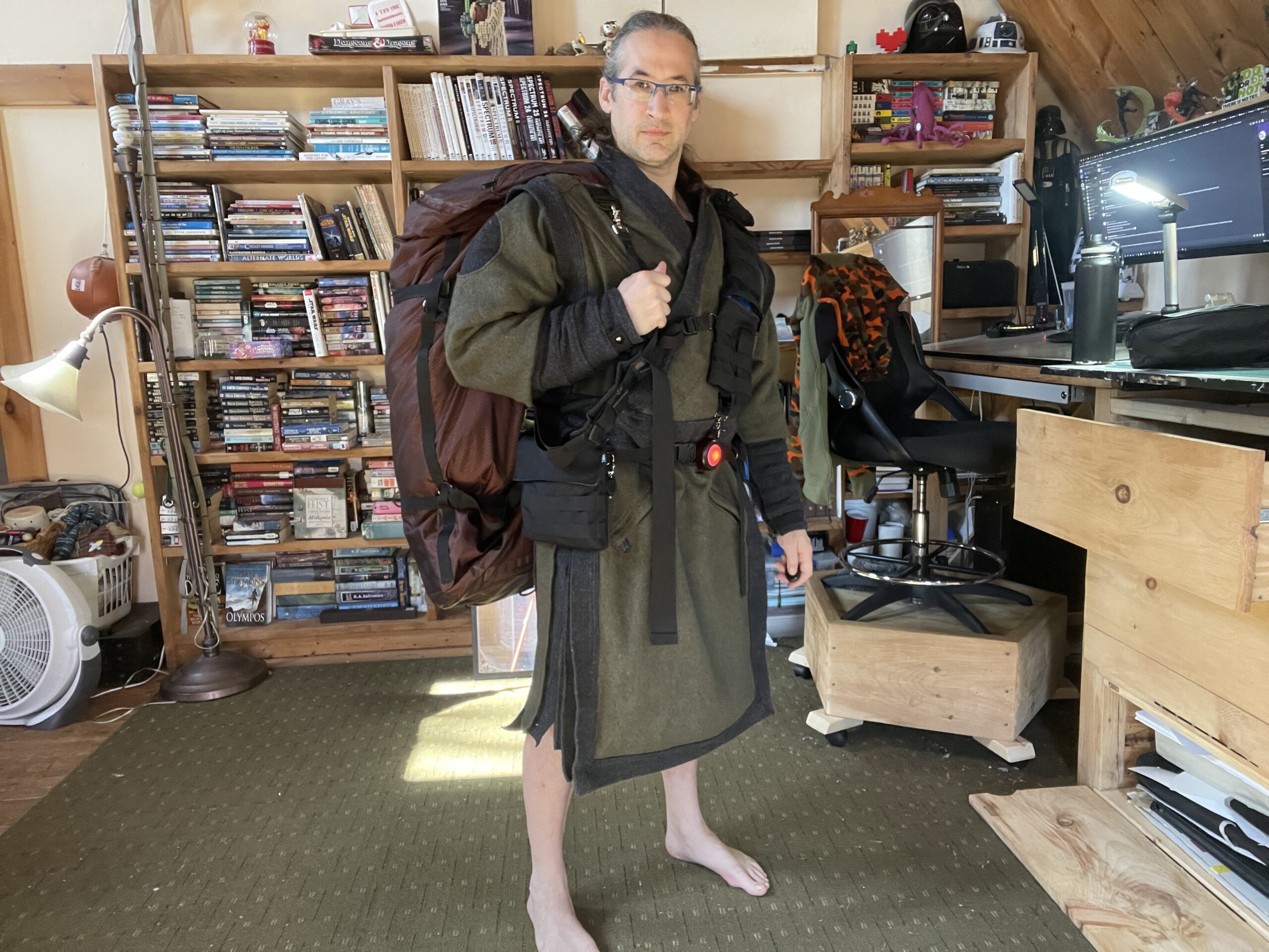 Ready for adventure (by the way, the belt buckle light has “regular” lighting plus red, green, and blue…depending on my Jedi/Sith mood…)
