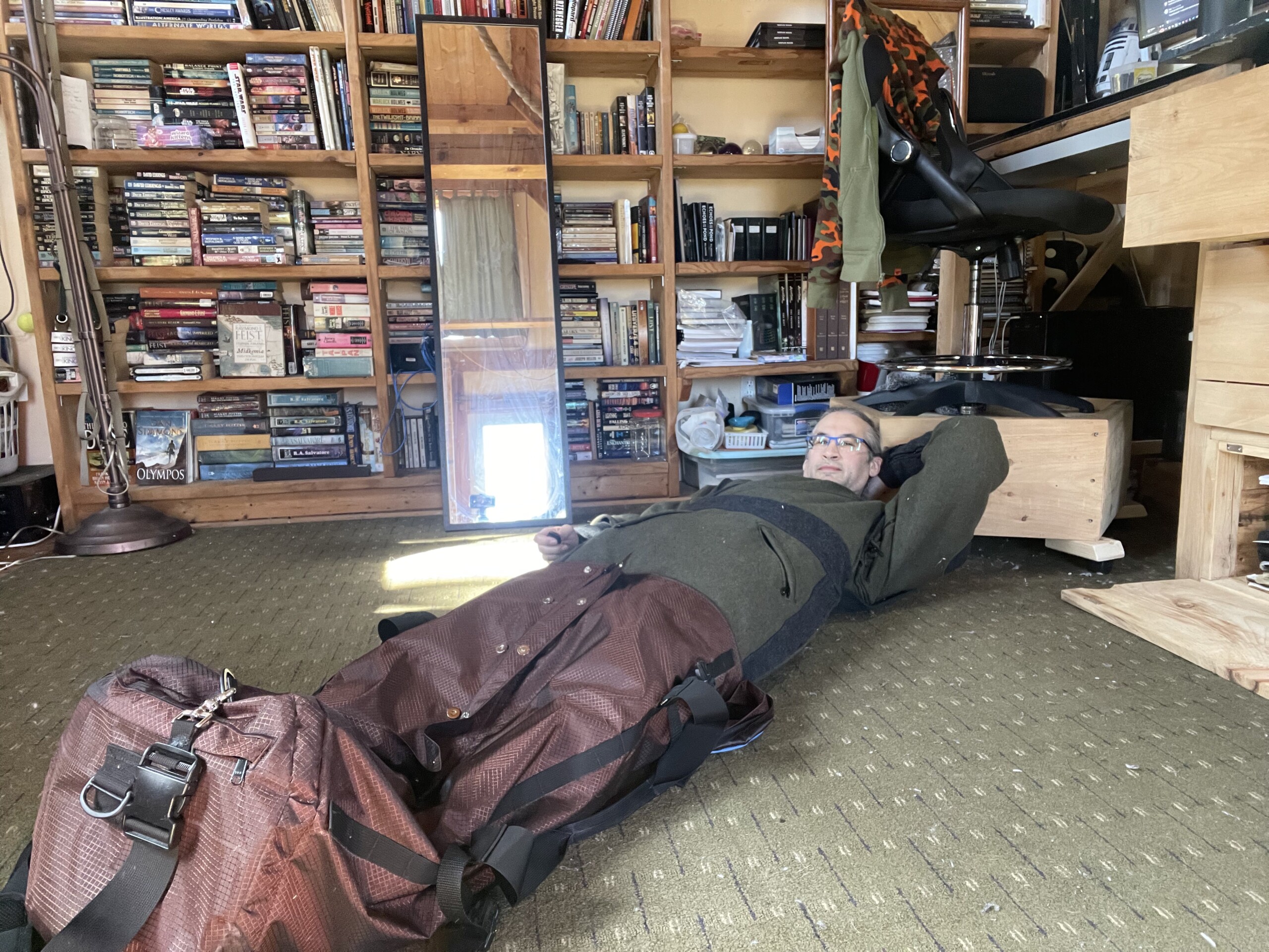My first duffle bag. It was supposed to be a quick, simple project, but, as usually happens, it quickly got out of hand as I kept coming up with new ideas and functions and features I could add. Years ago, when I started making long wool coats, I decided they’d be great to sleep outside in when I’m camping, removing the need to carry a sleeping bag. To complete the sleep system, I used some wool scraps and made big bag (more of a giant pillow case) that I could carry my gear in, and then once camp was established and it was empty, I could stuff my legs in to sleep. The concept worked well, if not my specific design at the time. It was just a top loading sack, so getting items in and out was a challenge. It didn’t close well, the cinch straps weren’t located right, and the carry straps were a problem. My idea was to use this ripstop material I bought years ago and never used to make an outer shell with a full length zipper as well as a top zipper and some webbing and proper attachment points for straps. It ballooned into this giant duffle bag that I’m itching to try out.