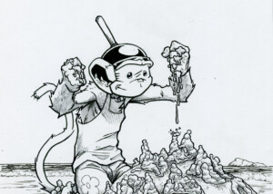 INKTOBER 2025 Day #13: DRINK. “Man, the Plunger Monkey related product ideas just don’t stop. What better way to fuel your simian-inspired, hardcore workouts (and your inner monkey) than