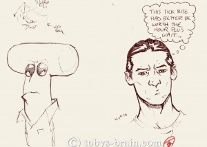 Yes, kiddos, this is indeed my THIRD post this week. Having this tablet allows me to putter away at things during times when I'd normally not be able to be very productive (though right now, given the time of day, I could be in my studio, but I'm still recovering from being sick, my foot hurts, and lounging on the couch with my leg up is much more appealing than being in my studio chair right now). Alright, time for round two of the recent moleskin sketching bonanza. These sketches were done while I was at Camp Carpenter with my youngest