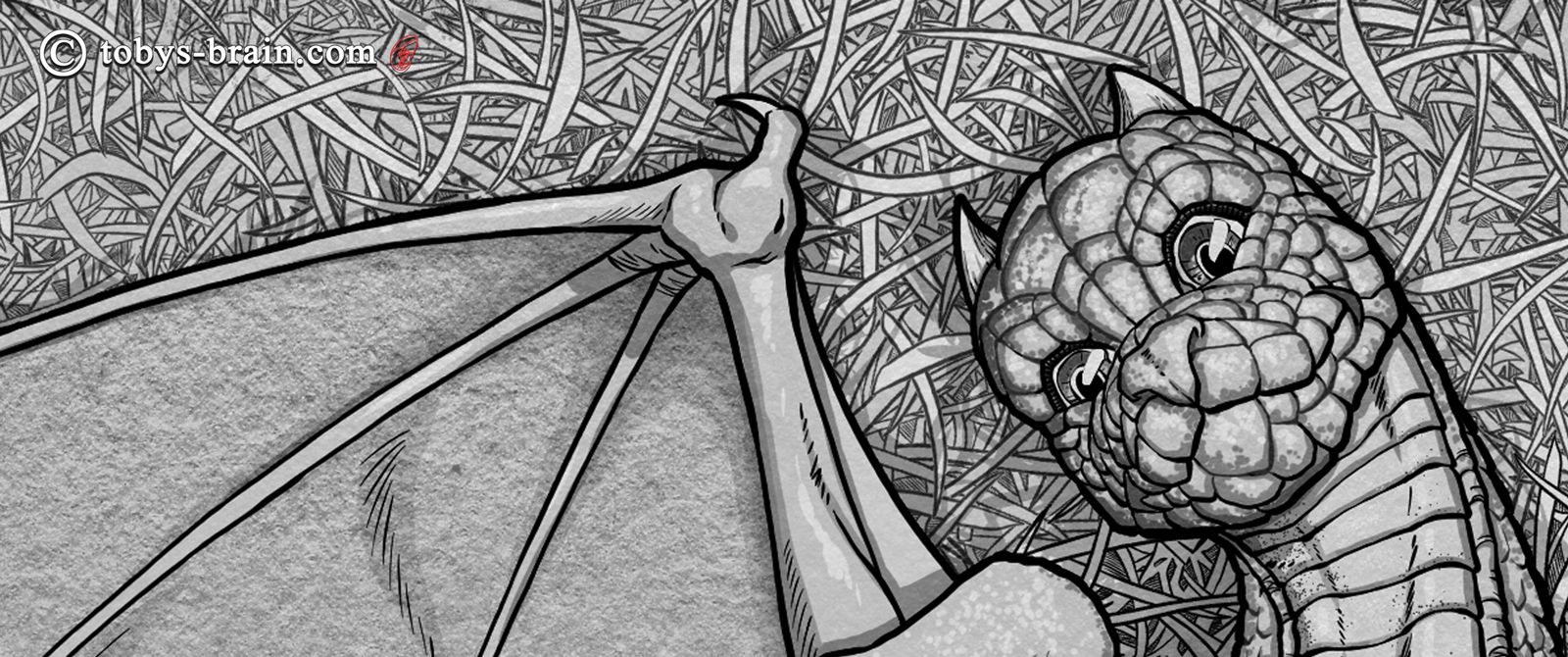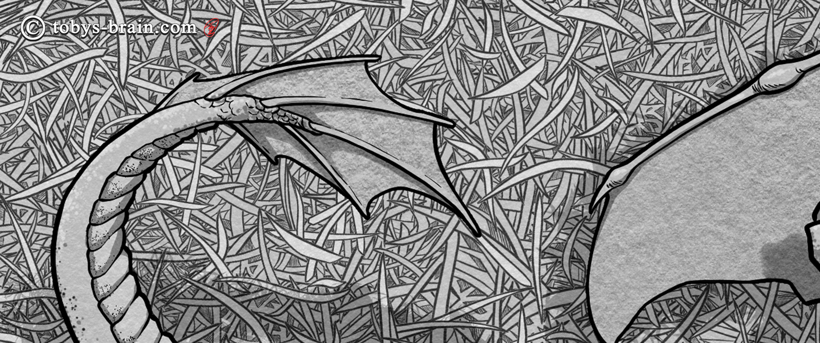 I could have spent a lot more time on this, noodling away at details, like drawing every single scale. But, I realized I had hit a nice balance between the busy-ness of the grass and the dragon, and I think if I allowed myself to go nuts on details, that would have been lost and the whole thing would look muddy.