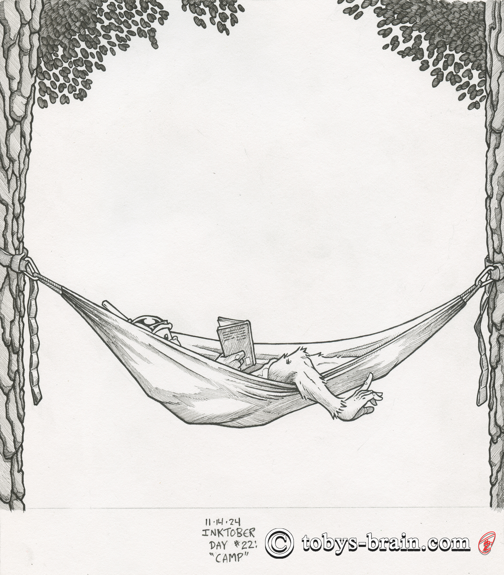 INKTOBER 2024 Day #22: CAMP. “I love hammock camping