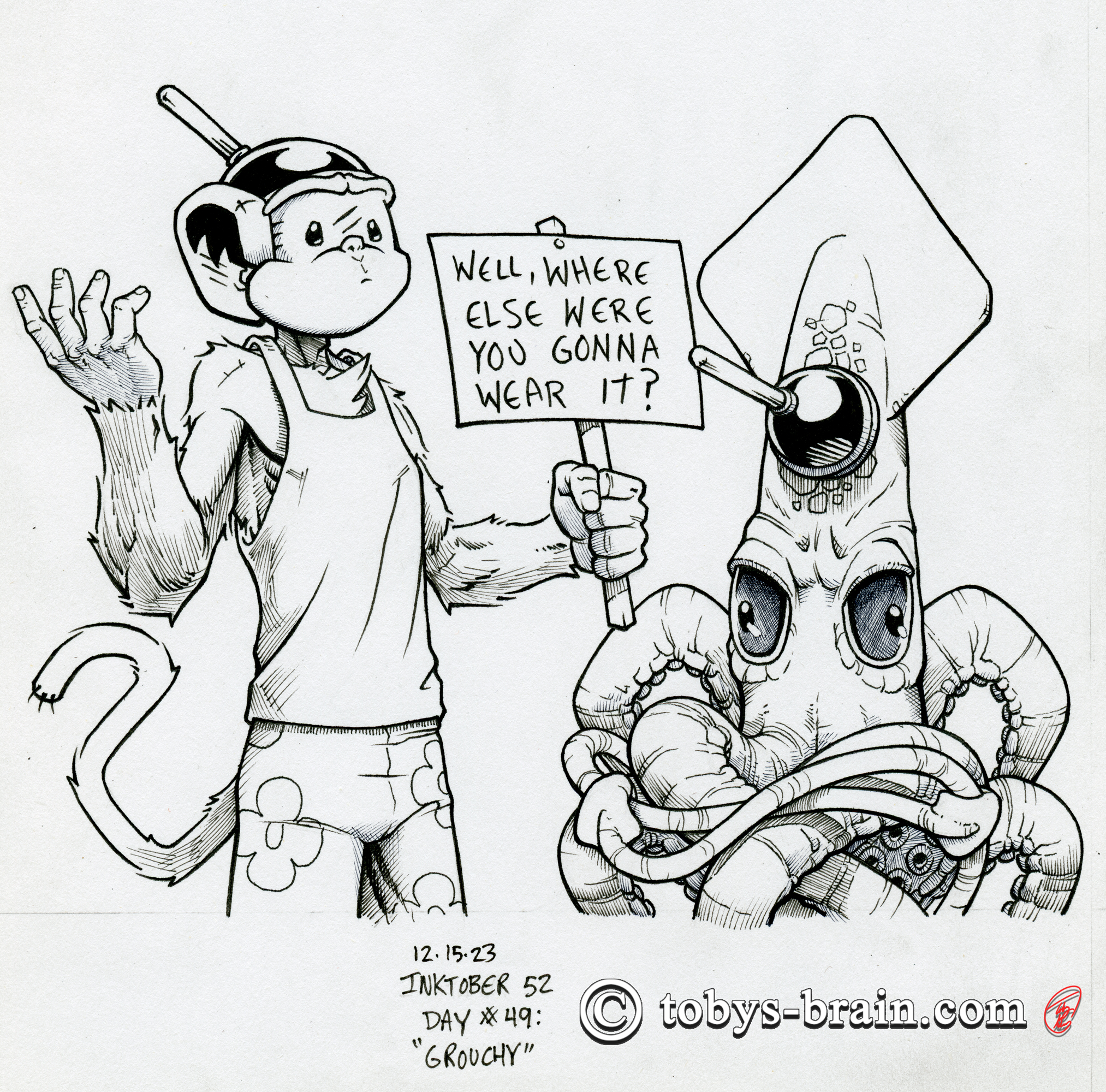INKTOBER 52 2023 Day #49: GROUCHY. “Who knew squids
