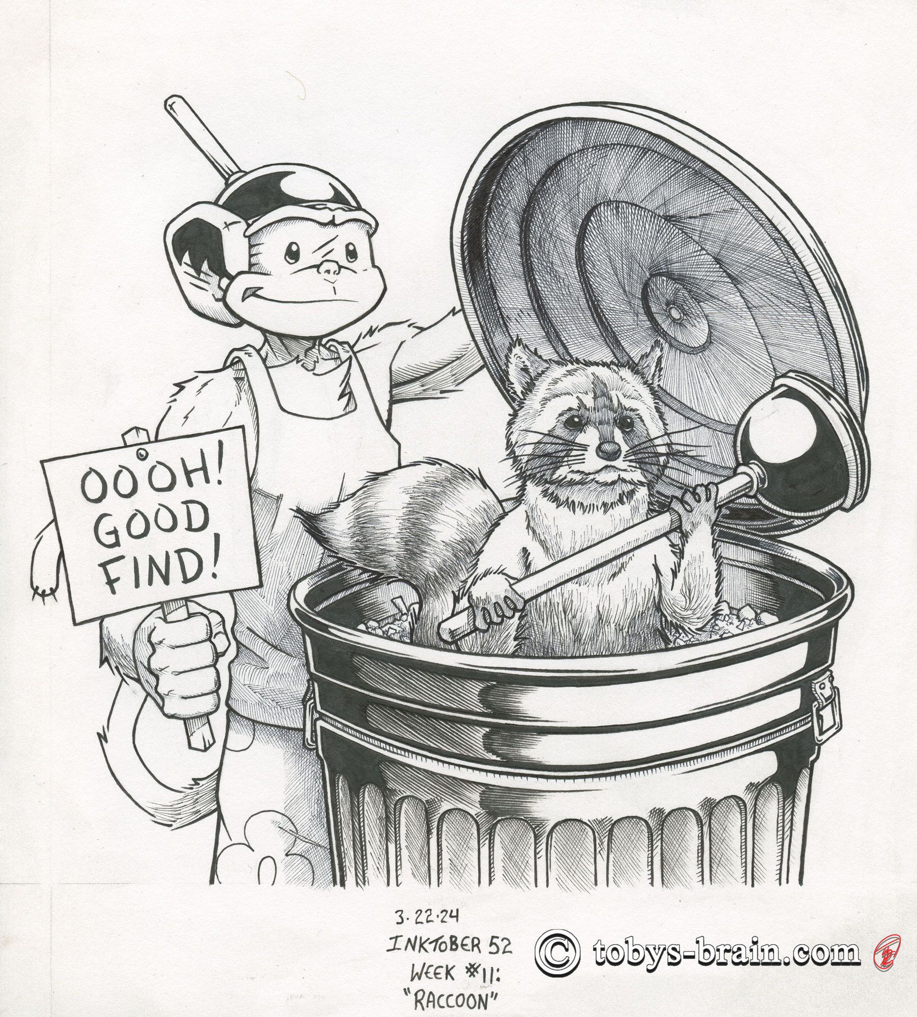 INKTOBER 52 2024 Week #11: RACCOON. “The whole time