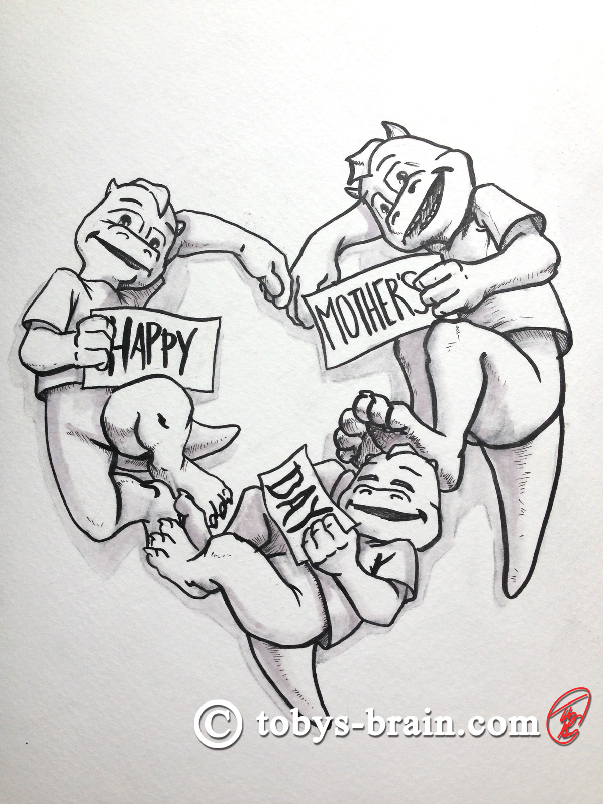 Finally, this year's traditional dragon kid Mother's Day card. The