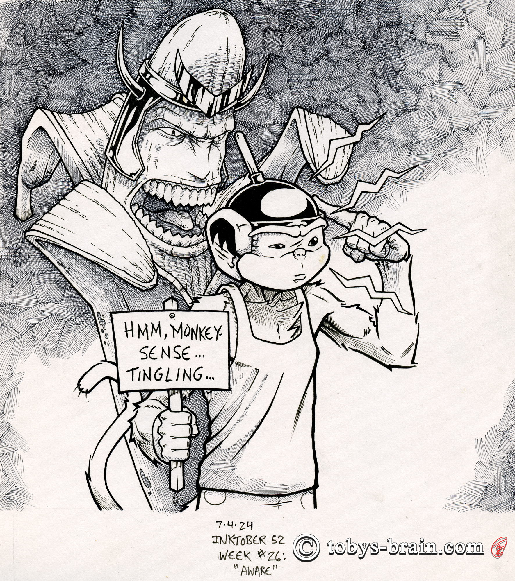 INKTOBER 52 2024 Week #26: AWARE. “In hindsight, I’m