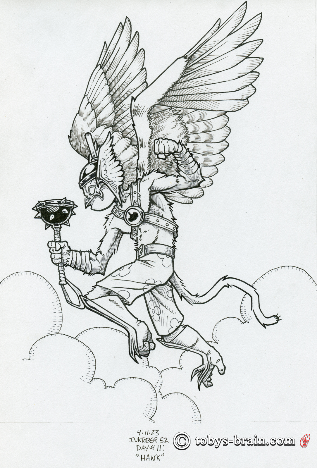 INKTOBER 52 2023 Day #11: HAWK. Behold: Hawk-Monkey! I’ve